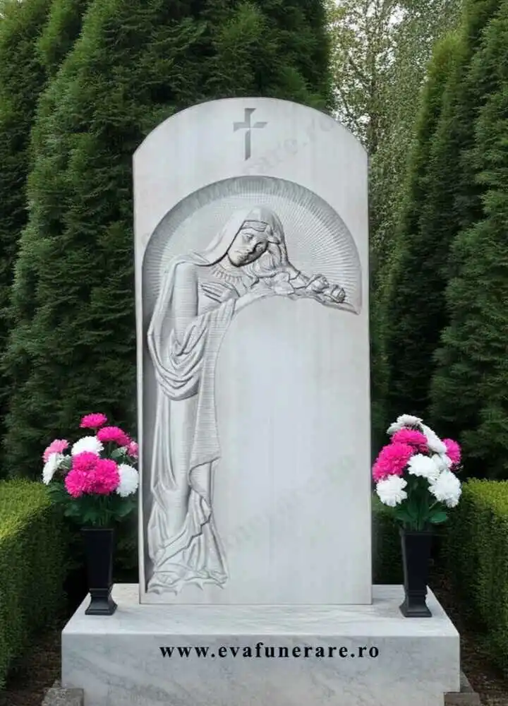 Această cruce din marmură cu Madonna și trandafiri este o alegere excelentă pentru a fi amplasată în interiorul bisericii, capelei sau mausoleelor. Aceasta poate oferi un sentiment de liniște și pace celor care vin să se roage și să mediteze. De asemenea, poate fi un obiect decorativ minunat, care să atragă atenția vizitatorilor datorită detaliilor și calității sale. Dimensiuni 140x60x8cm.